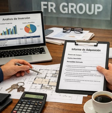 Antes de comprar un inmueble realizamos un estudio financiero completo: precio de compra, coste de reforma, gastos asociados y estimación conservadora de venta.